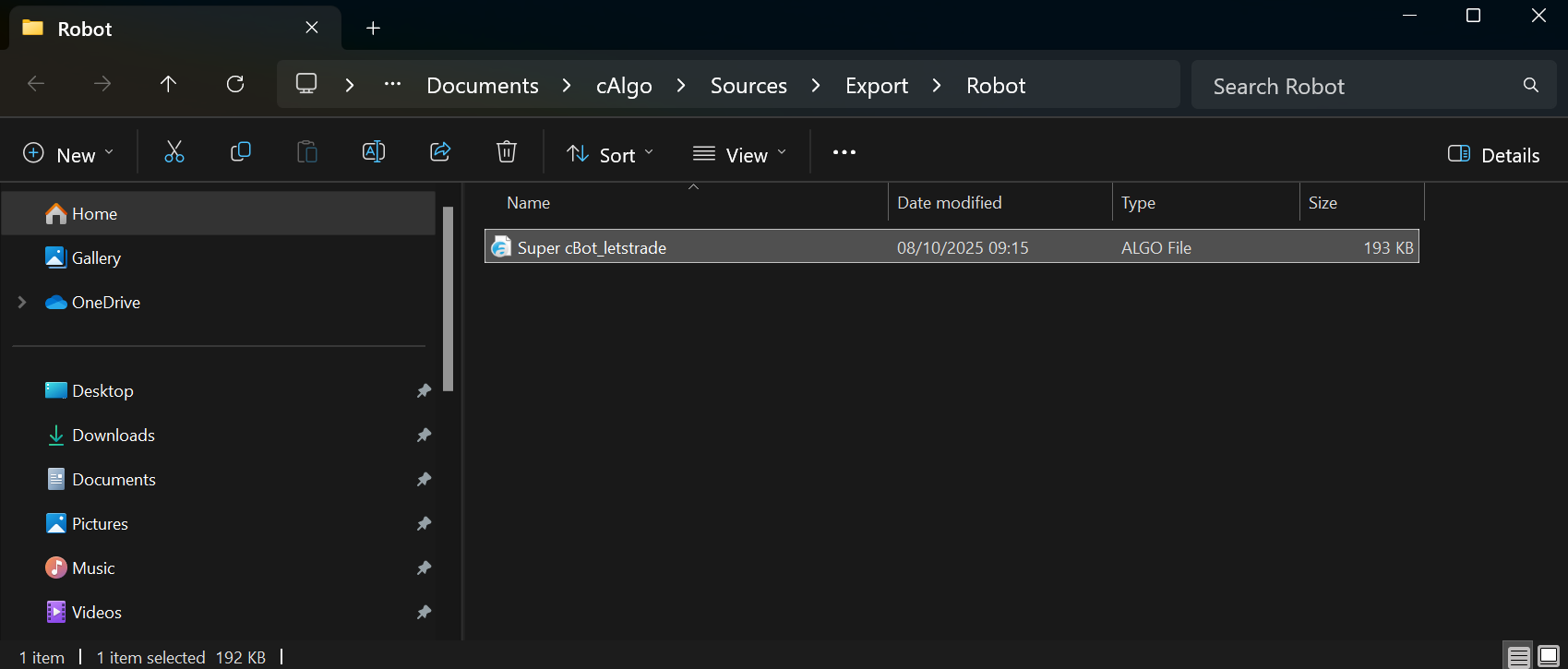 Export an algorithm in cTrader