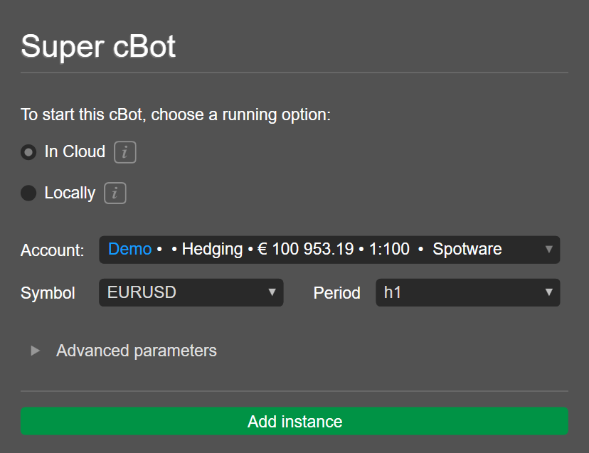 Start a trading bot in cTrader