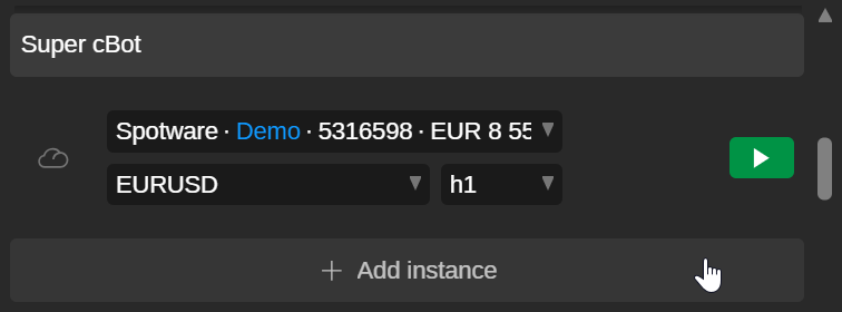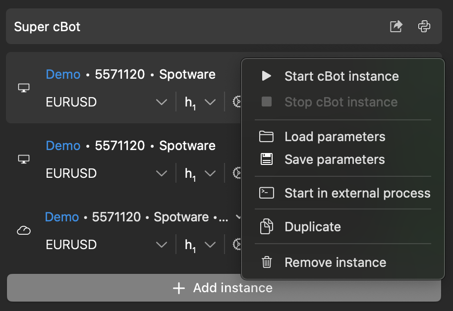 While some instances appear by default for each installed cBot, you can add new instances as needed.