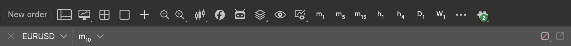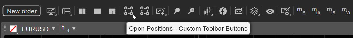 The Custom Toolbar Button plugin adds two buttons to the chart toolbar, and clicking a button performs an action.