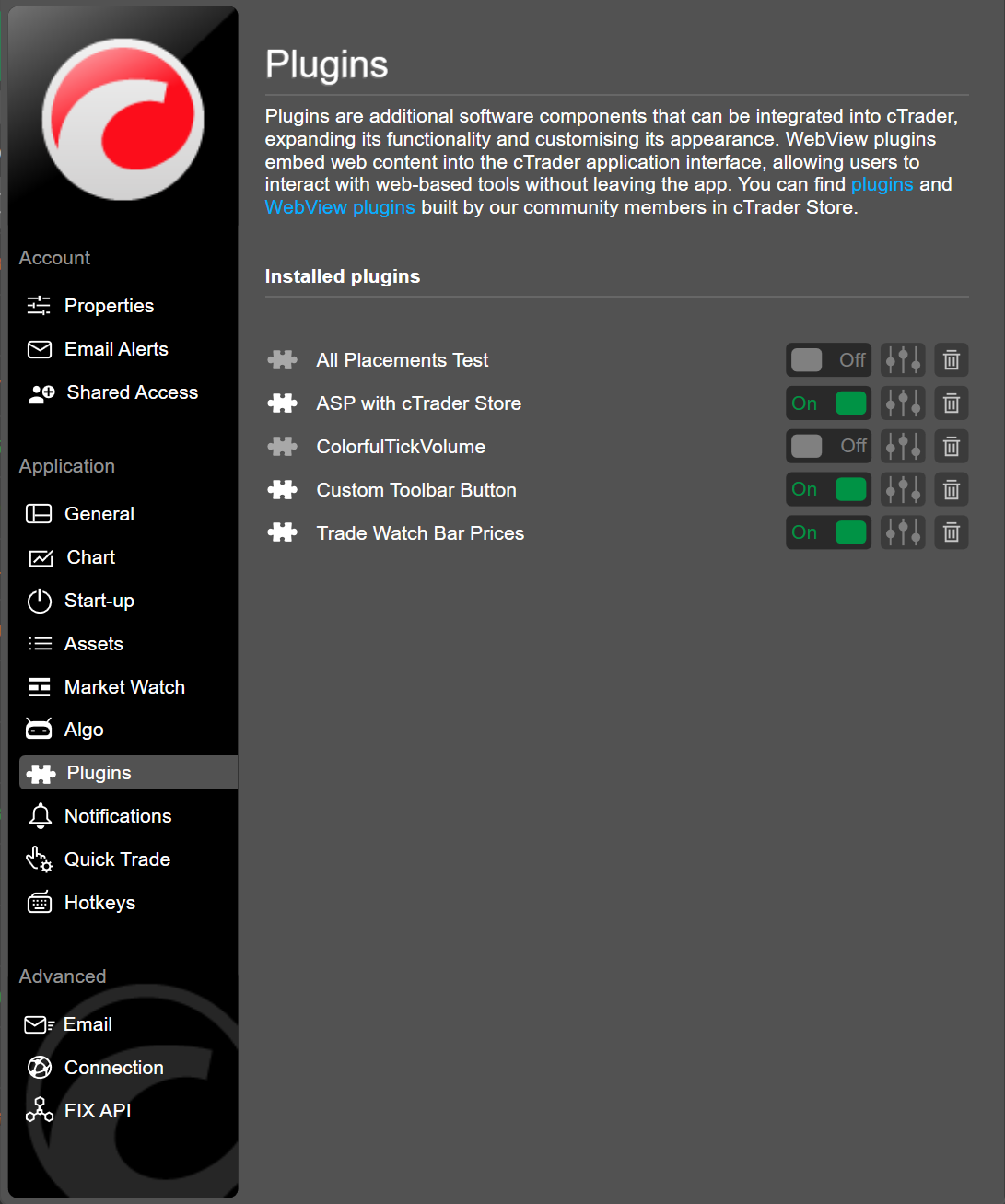 Add and manage plugins in cTrader
