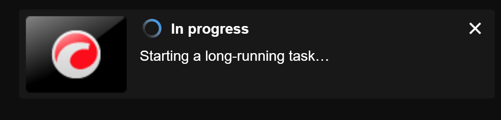 INotifications.ShowPopup(caption, message, state)to display a popup notification with a given title, message and state (PopupNotificationState).PopupNotificationinterface for programmatic control of long-running or progressive notifications by calling.Complete()to update their final state.