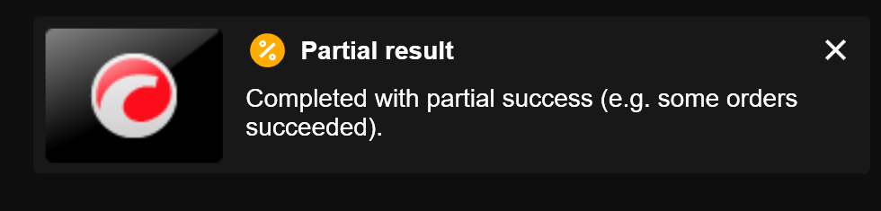 Partialto communicate a partially successful result (e.g. some orders succeeded). Example: