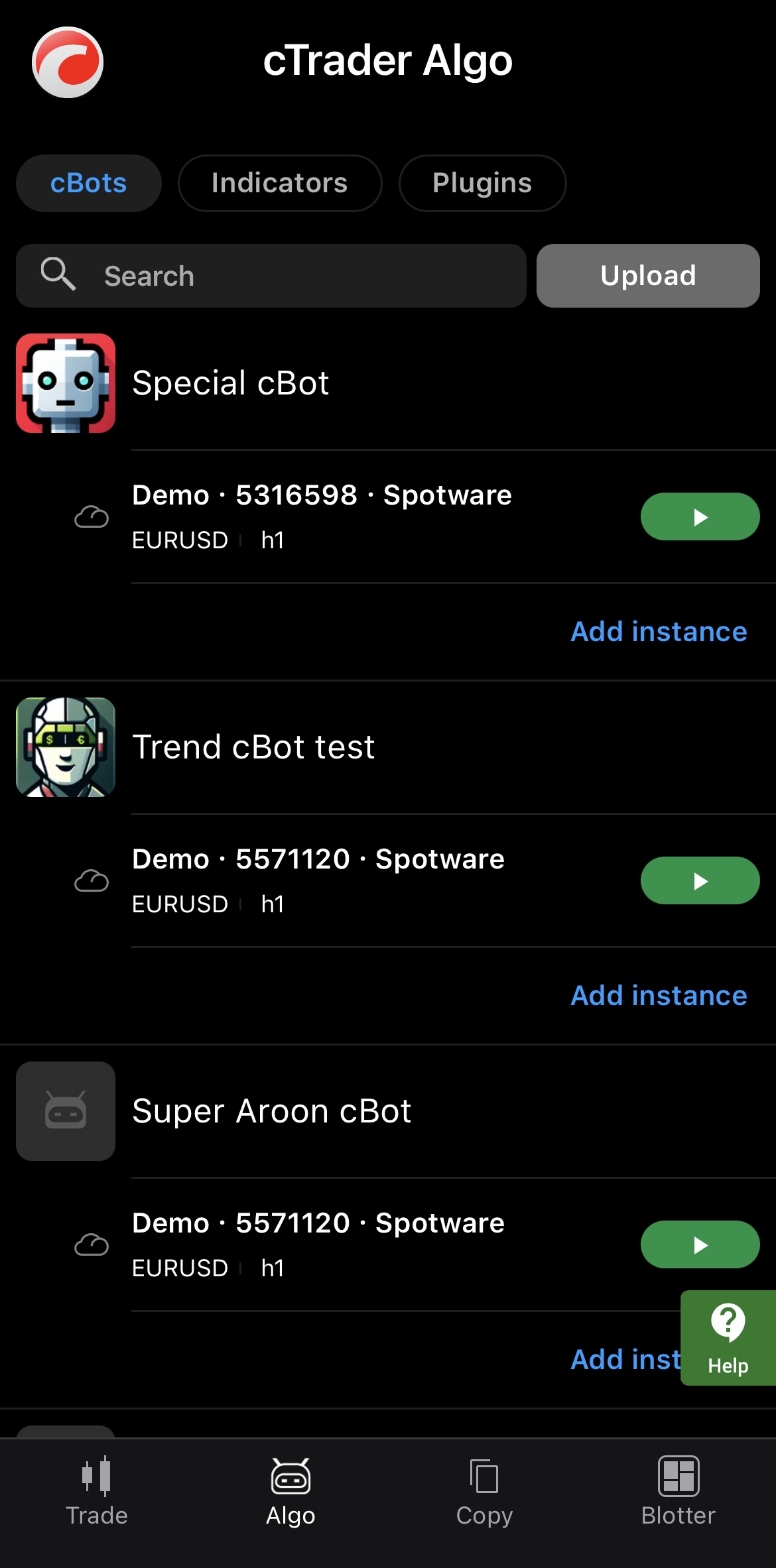 Thanks to cloud synchronisation, the new cBot is automatically available from all cTrader apps where your cTrader ID is active. You can even start the trading bot in cTrader Mobile or Web.