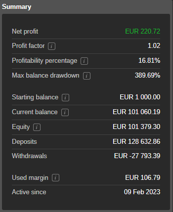 - 盈利交易 – 账户盈利交易的总数和百分比。