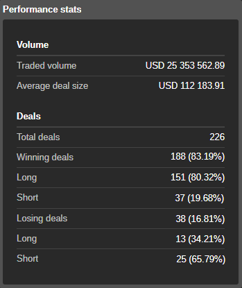 绩效统计部分包含以下交易量和交易信息: