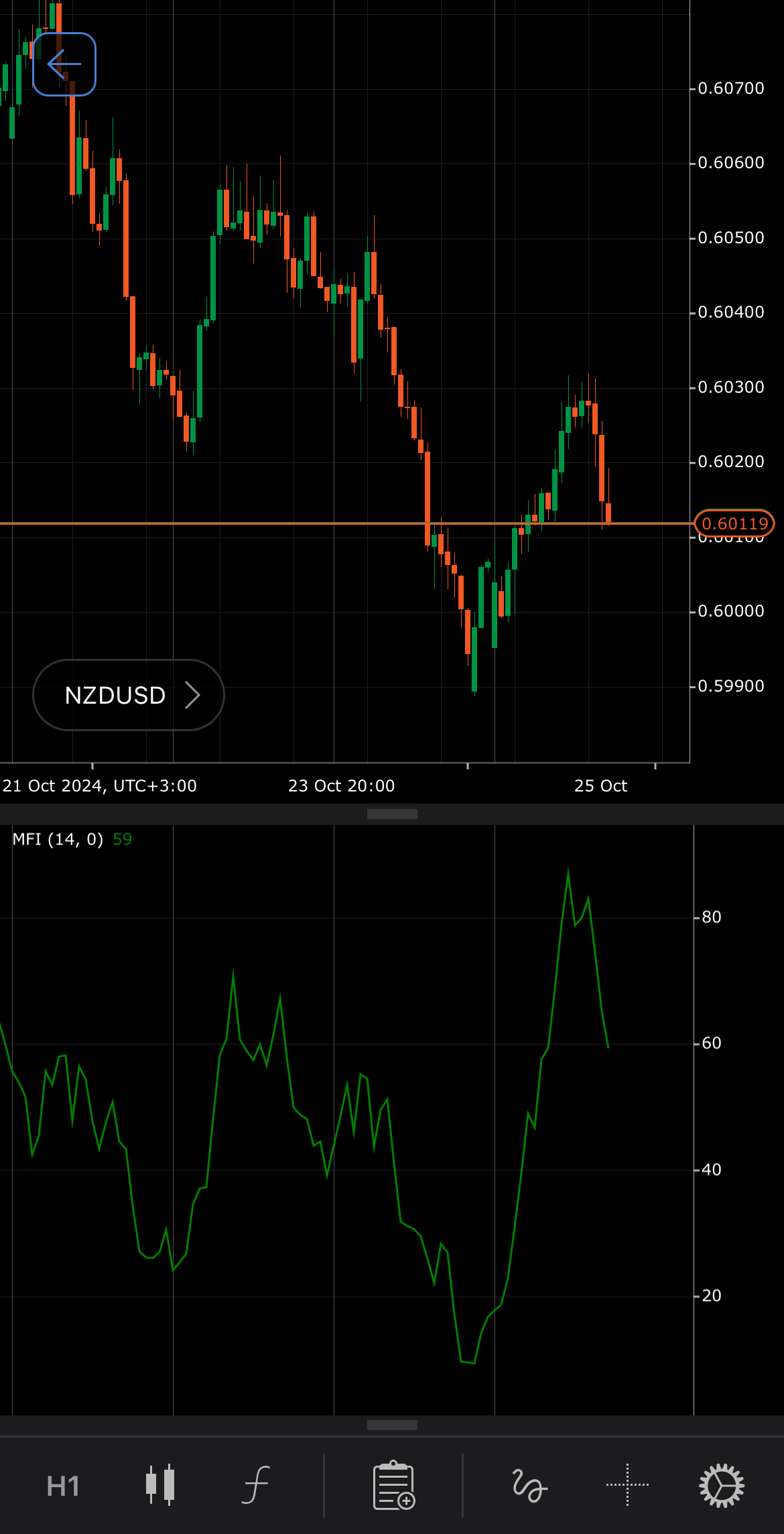 Buy signal – traders can consider entering a buy position when the MFI value drops below 20, indicating oversold conditions, then rebounds above it, suggesting increased buying pressure.