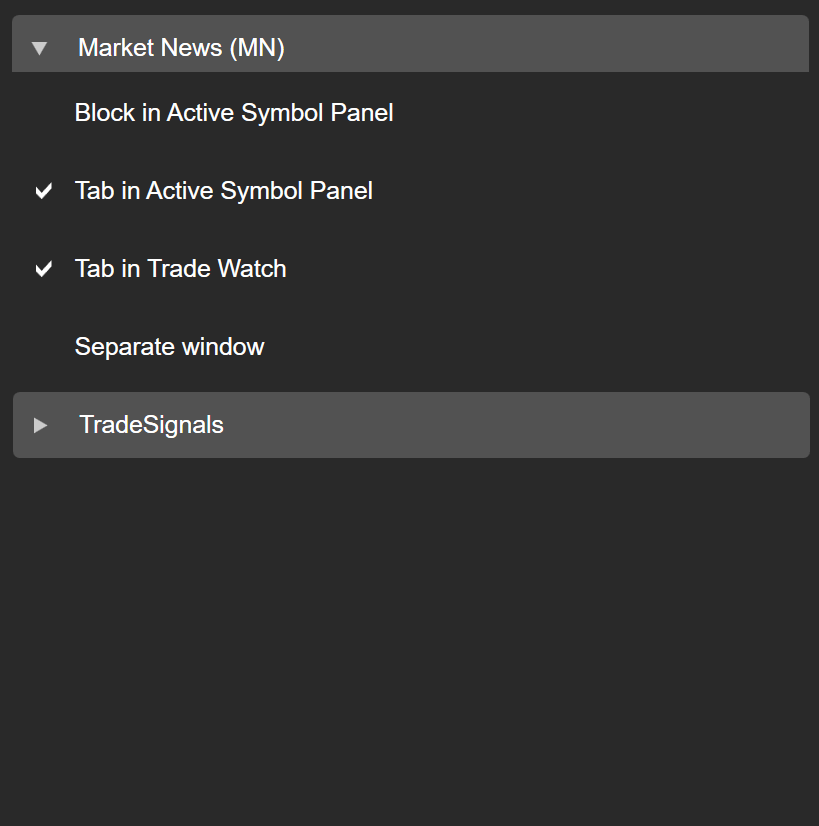 In cTrader Mobile, select the interface areas where you want the WV plugin to be displayed.